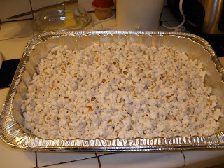 First batch of caramel corn for the year!!! My ever present helper the Toad has already started licking the pan. :)